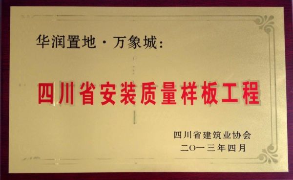 2012年度四川省优秀安装质量奖(蜀安杯)