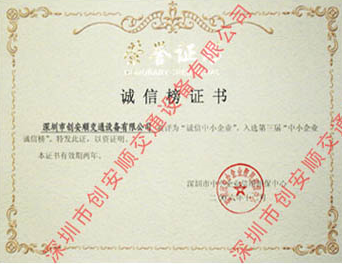 产品名称: 诚信榜证书 |