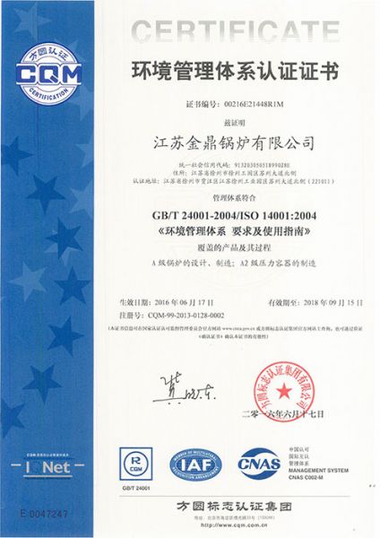 环境管理体系认证证书