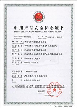 产品名称: 矿用产品安全标志证书 |